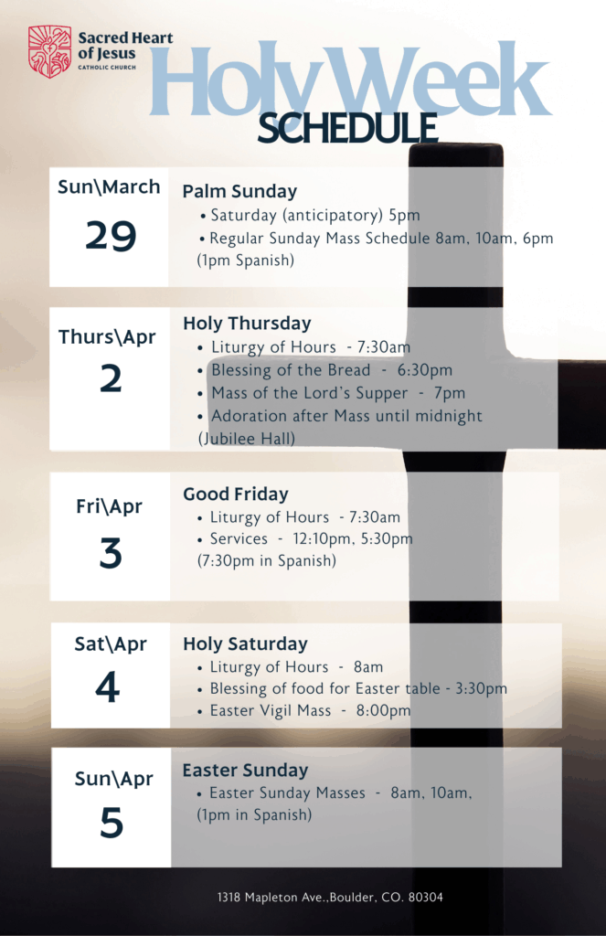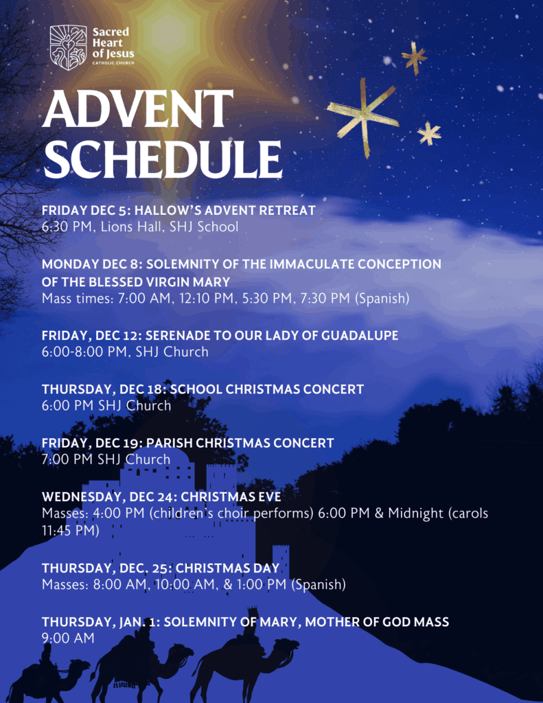 Reconciliation is held at Sacred Heart of Jesus during the following days and times.